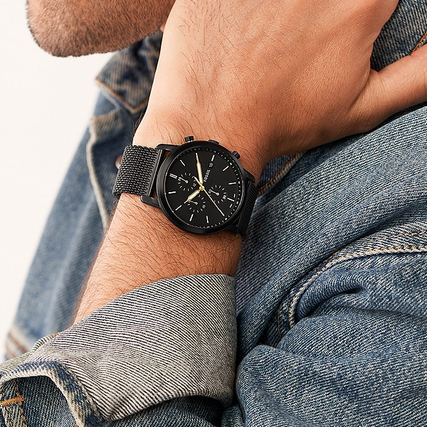 WR: 5 ATM - Case: 42 mm - Gender: Gent - Case Material: SS IP Black - Strap Material: Mesh - Movement: Quartz - Functions: Chronograph - Date - Glass: Mineral - Product Type: Wristwatch - Packaging: Official Box